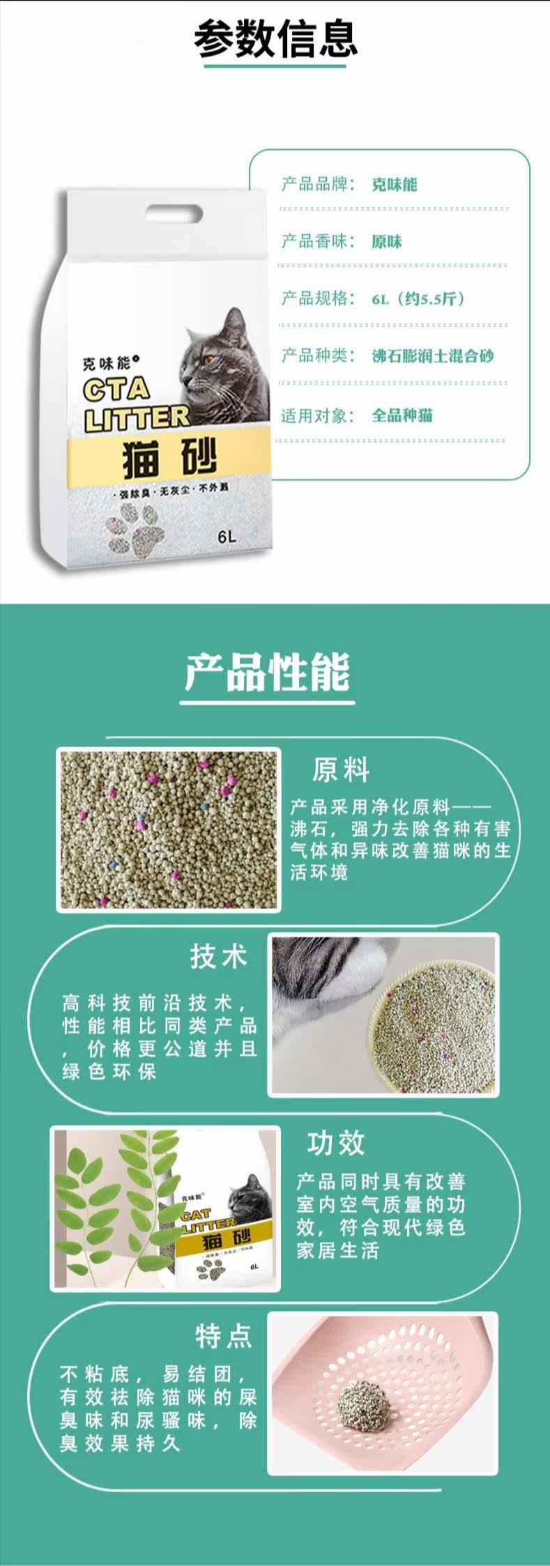 | 品牌 | 克味能 | 产品特性 | 超强除臭,结团,速干,易打理 |