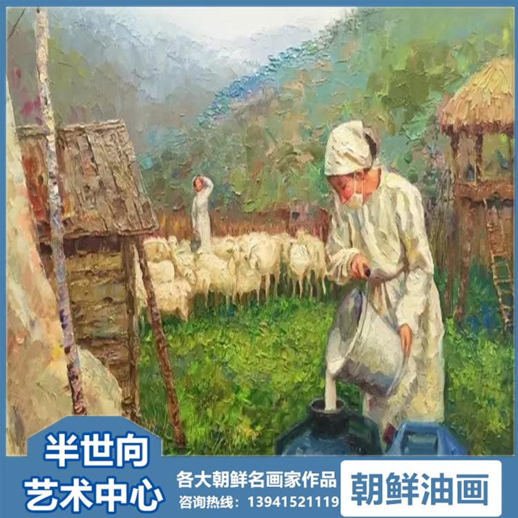 朝鲜画 朝鲜油画价格 金成哲(一级画家)《待到山花烂漫时》90x58
