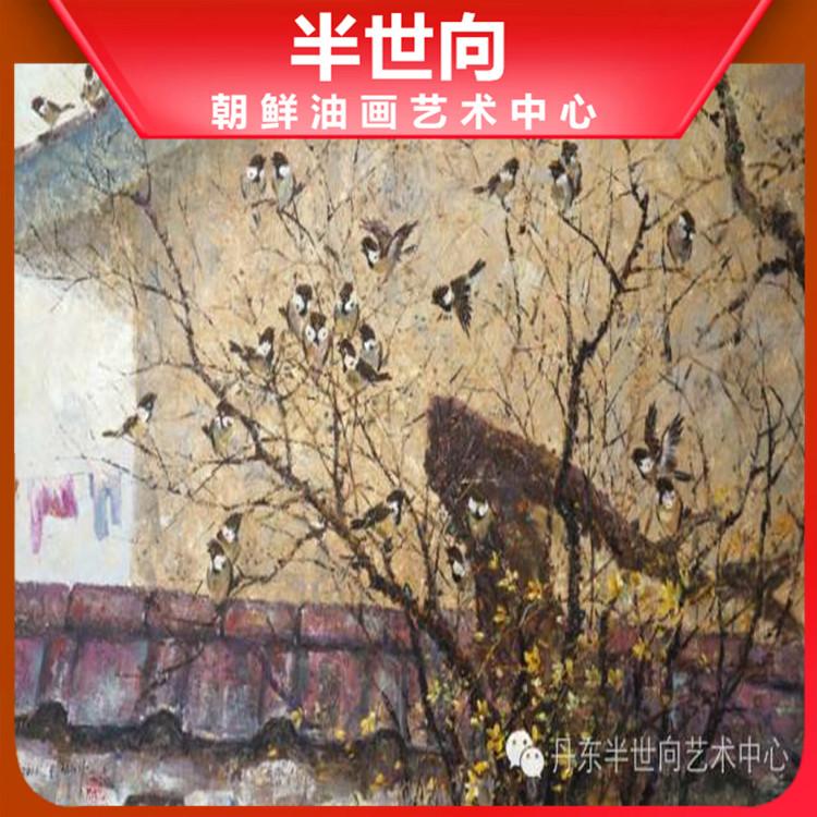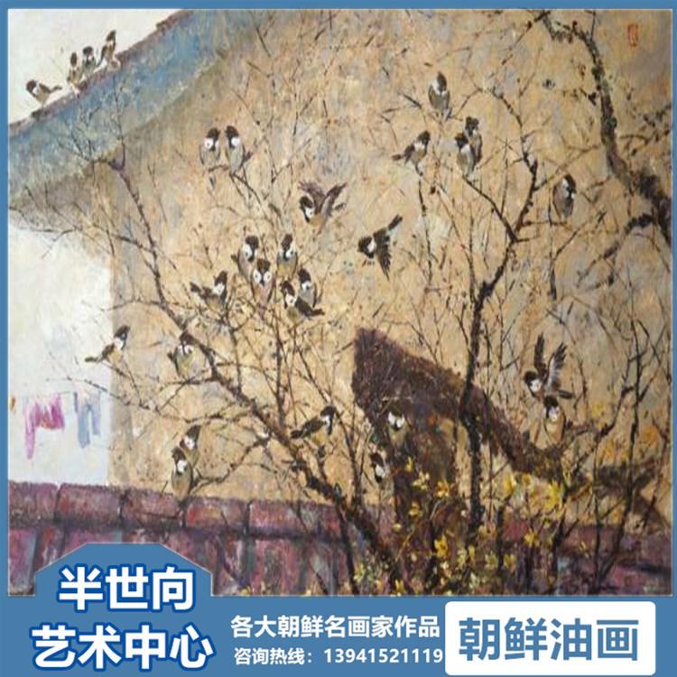 朝鲜画 朝鲜油画价格 柳权哲(一级画家)《春色幽静》140X75