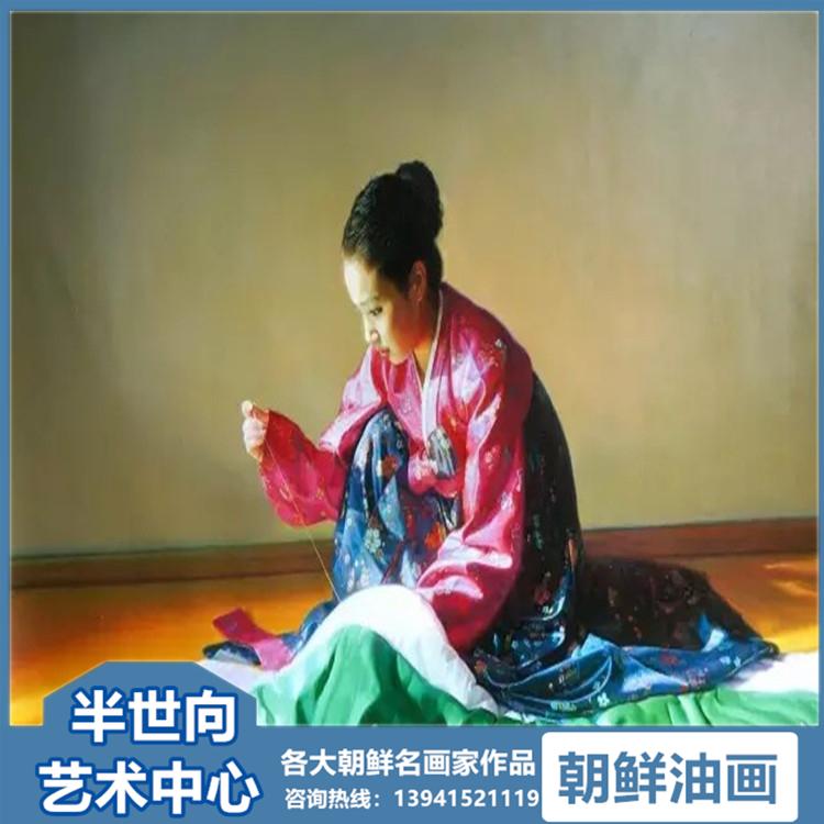 朝鲜画 朝鲜油画价格 金成哲 (一级画家)《池塘》 90x56