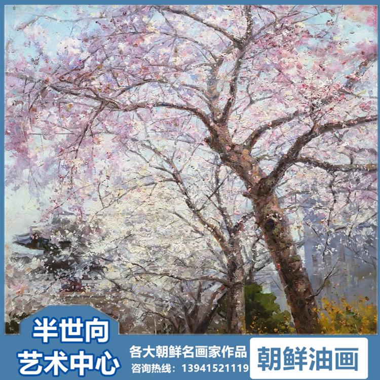 朝鲜画 朝鲜油画价格 金哲镇 (功勋艺术家)《桃花依旧笑春风》80x50