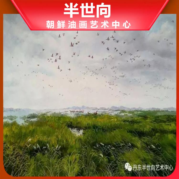 朝鲜画 朝鲜油画价格 李浩延(一级画家)《云淡风轻》130x80