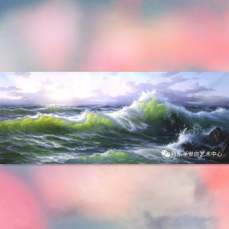 朝鲜画 朝鲜油画价格 柳尚赫 (一级画家)《守得云开见日出》118x78