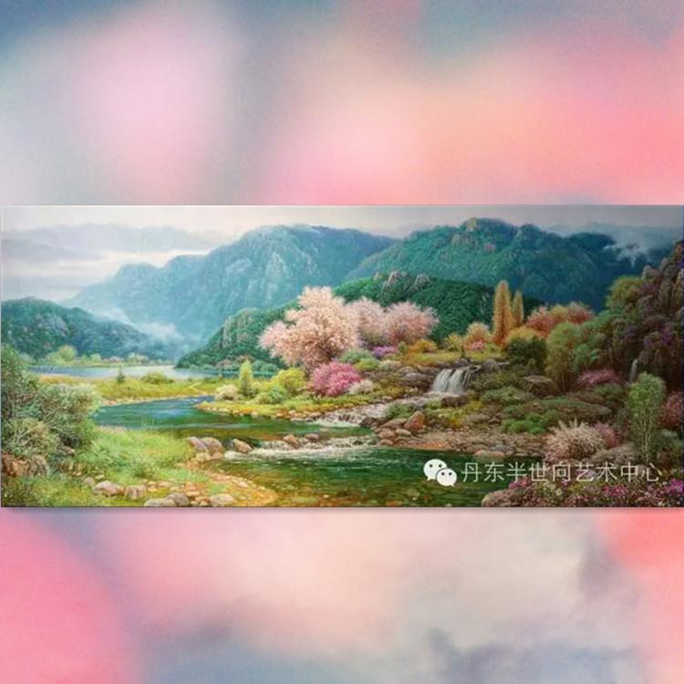朝鲜画 朝鲜油画价格 崔光秀(一级画家)《三月桃花 》81x50