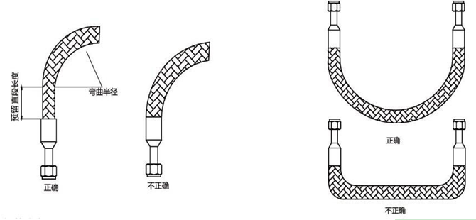 通过足够的软管长度分散运动和防止产生小于预留软管弯曲半径的弯曲。