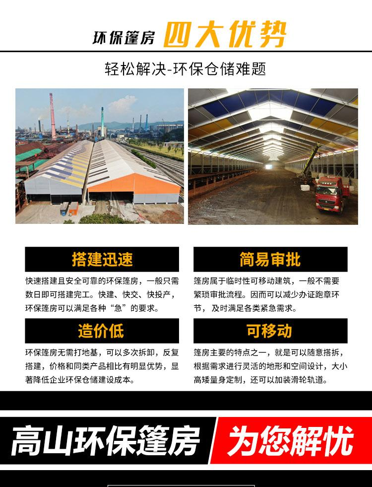 环保仓储篷房 大跨度 可达70米 铝合金框架 一天可搭上千平 砂石存储