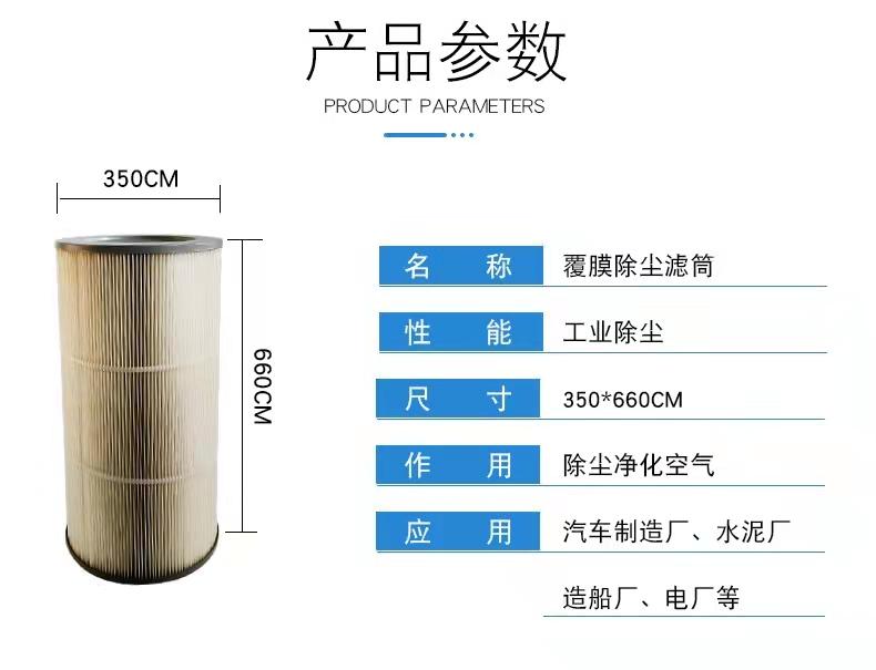 | 名称 | 除尘滤筒 | 材质 | 聚酯无纺布 |