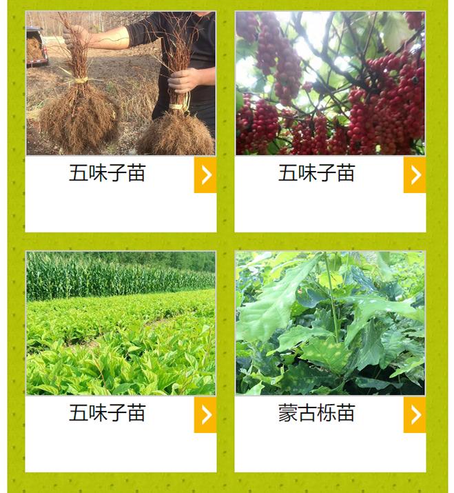 • 主营产品: 五味子苗、花楸苗、百花花楸苗、红豆杉苗、红松苗、刺槐苗、九角枫苗、扭劲槭苗、刺五加苗