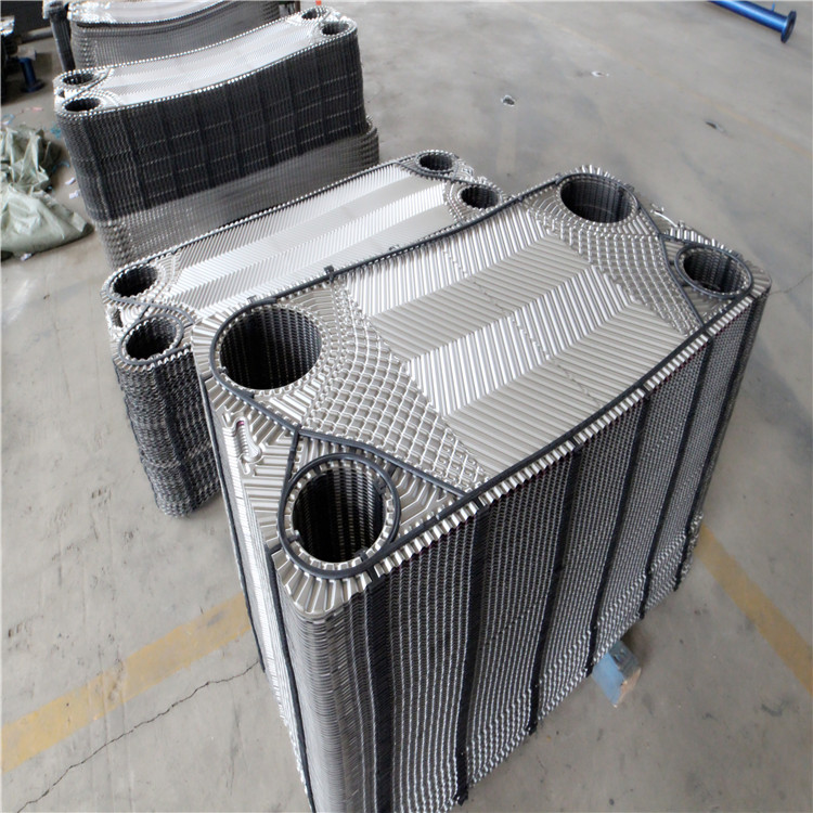 换热板片的材质一般为SUS304(0Cr19Ni9),特定可为SUS316L(00Cr17Ni14Mo2),SUS316L耐腐蚀性能比SUS304好.这类不锈钢材料一般不耐用含氯离子较高的介质。