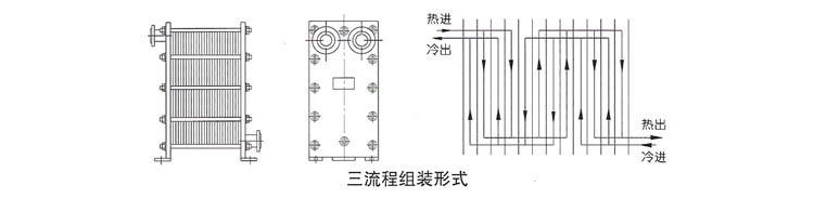 当两种介质的流量不同且大致为2:1且不易装配成双流程时,可选择该类型的换热器。它适用于小区集中供热,一般一次网的热水流量较小,二次网用户取暖供水的流量较大的场合。
