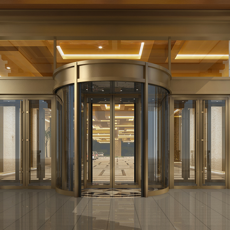 旋转门检验规范:金属旋转门及其附件和玻璃质量都应契合规划要求及有关规范规则。