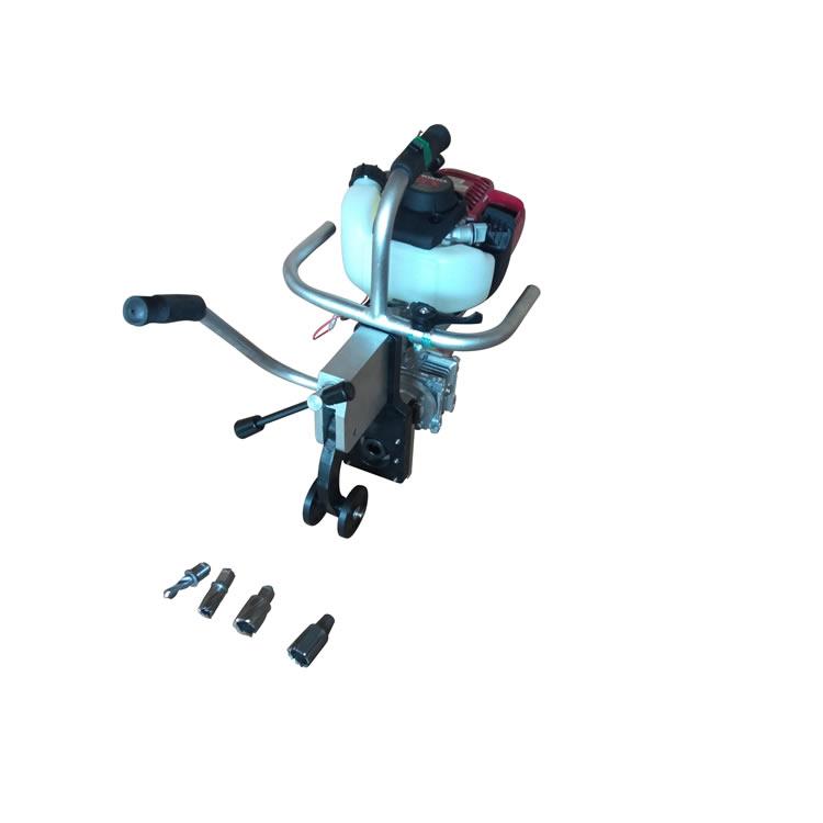 内燃钢轨钻孔机是铁路工务、电务部门钻制钢轨夹板螺栓孔的专用机械。以小型汽油机为动力,经过减速器带动主轴旋转,手柄驱动齿轮拨动齿条实现进给,配有高压水壶,空心钻头在冷水的辅助下延长了钻头的使用寿命。本机具有体积小、重量轻、钻孔效率高、夹轨牢靠、使用方便、钻孔位置准确等特点。适用于43~75kg/m各种型号钢轨。