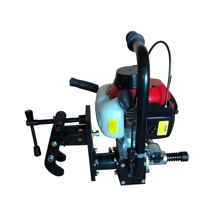 内燃钢轨钻孔机是铁路工务、电务部门钻制钢轨夹板螺栓孔的专用机械。以小型汽油机为动力,经过减速器带动主轴旋转,手柄驱动齿轮拨动齿条实现进给,配有高压水壶,空心钻头在冷水的辅助下延长了钻头的使用寿命。本机具有体积小、重量轻、钻孔效率高、夹轨牢靠、使用方便、钻孔位置准确等特点。适用于43~75kg/m各种型号钢轨。