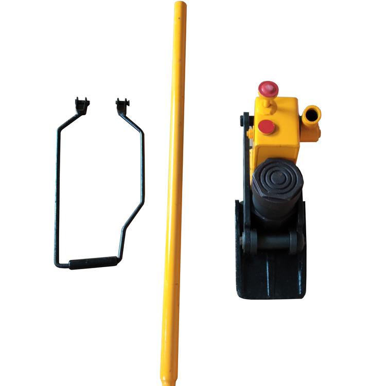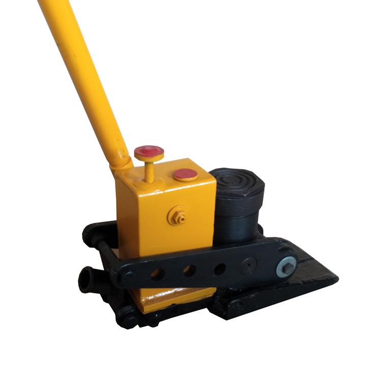 1、先将机座插入钢轨底部,钢轨搭到起道杠杆托板上,手提梁水平放置,旋紧回油阀杆。