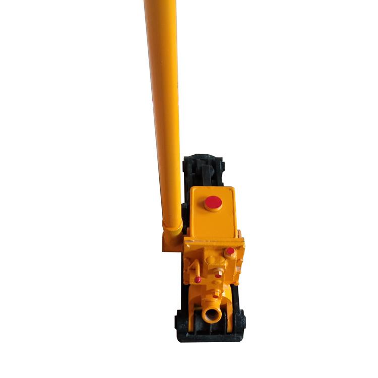 原理:往复摆动手搬把,通过定块机构,使柱塞泵连续工作(吸,压油),将液压油压入油缸内,推动活塞伸出,在活塞推力作用下油缸及拨臂带动钢轨向前移动,起到拨道的目的。