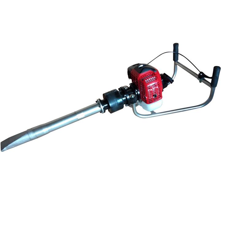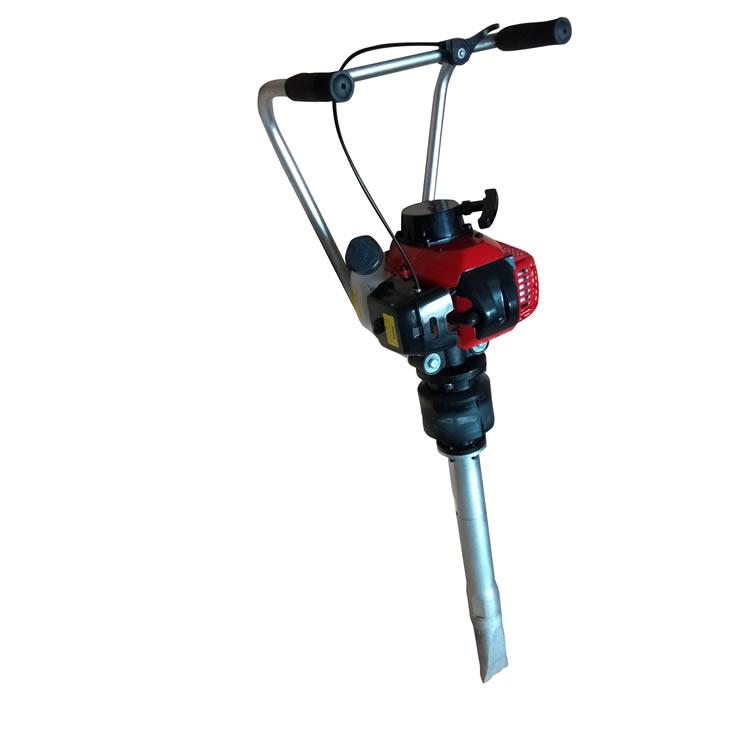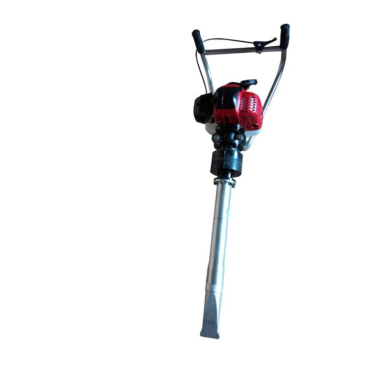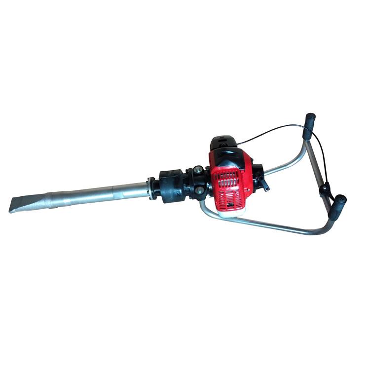 本机由镐体支架,汽油机,汽油机连接碗,离合器,软轴,橡胶减震器,减震器连接管,镐头连接管,偏心轴,高速轴承,防尘盖,镐头,所组成。本机外表林化与镀烙,防止生锈。ND-4型内燃捣固镐是一种适用于铁路线路道床石喳捣固作业的手提、便携式专用工具。它是由汽油机作为原动力,通过离心式离合器、偏心轴、橡胶减震器、拖动镐体产生高频扰动力,使枕下石喳重新排列密实,从而实现对道床石喳捣固的目的。特别适用于道岔、隧道、桥涵等大中型养路机械不能作业的道床区域性机动养护作业。该产品设计先进,结构合理,体积小、重量轻、携带方便,操作简单,省时省力,维修方便,易于保养。