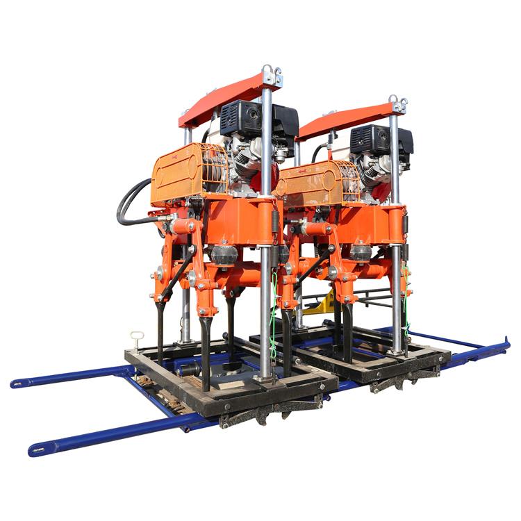 2.抬整机上道,将单走行轮抽出支撑管置于另一侧钢轨上,锁紧紧固螺钉。取下振捣棒将其前端对地轻轻磕碰,振捣棒发出嗡……的高频响声后即可使用。