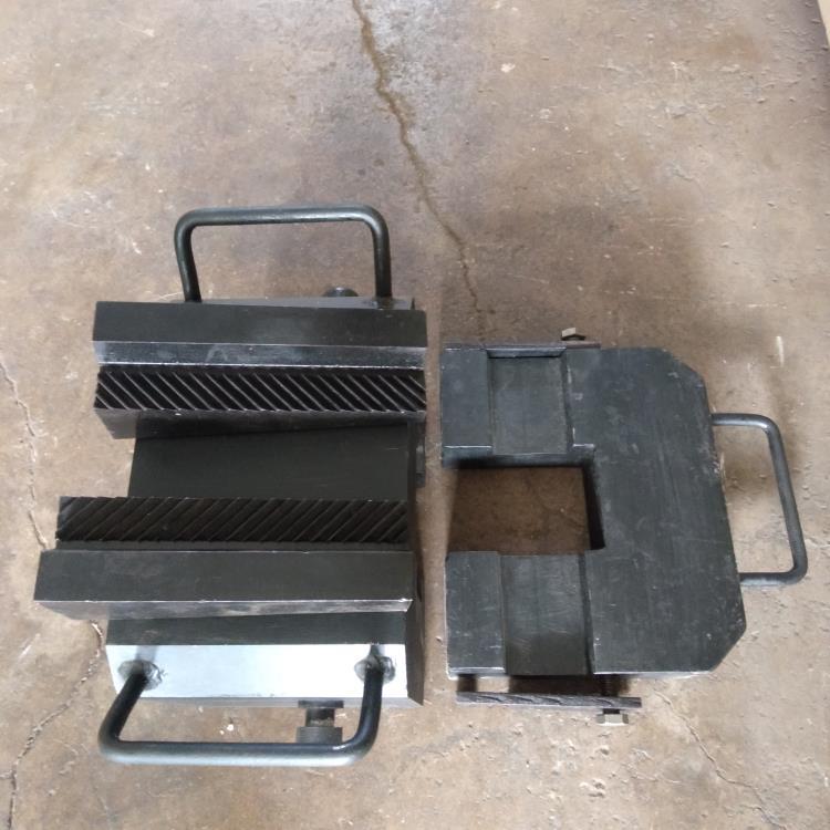 撞轨器主要应用于铁路长钢轨在进行无缝线路联合接头焊接施工、无缝线路应力放散时,用“钢轨人力滑车”撞击撞轨器,使长钢轨进行纵向移动,调整轨缝作业的一种辅助机具。撞轨器由主体、垫板、斜铁及挂钩(我现在只有前3样,没有挂钩)等结构件组成,其中主体、垫板、斜铁均由高强度合金钢整体锻造而成,并经调质热处理,因而,撞轨器整体强度高。