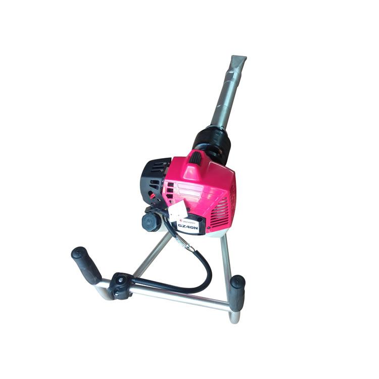 本机由镐体支架,小松汽油机,汽油机连接碗,离合器,软轴,橡胶减震器,减震器连接管,镐头连接管,偏心轴,高速轴承,防尘盖,镐头,所组成。本机外表林化与镀烙,防止生锈。ND-4型内燃捣固镐是一种适用于铁路线路道床石喳捣固作业的手提、便携式专用工具。它是由汽油机作为原动力,通过离心式离合器、偏心轴、橡胶减震器、拖动镐体产生高频扰动力,使枕下石喳重新排列密实,从而实现对道床石喳捣固的目的。特别适用于道岔、隧道、桥涵等大中型养路机械不能作业的道床区域性机动养护作业。该产品设计先进,结构合理,体积小、重量轻、携带方便,操作简单,省时省力,维修方便,易于保养。