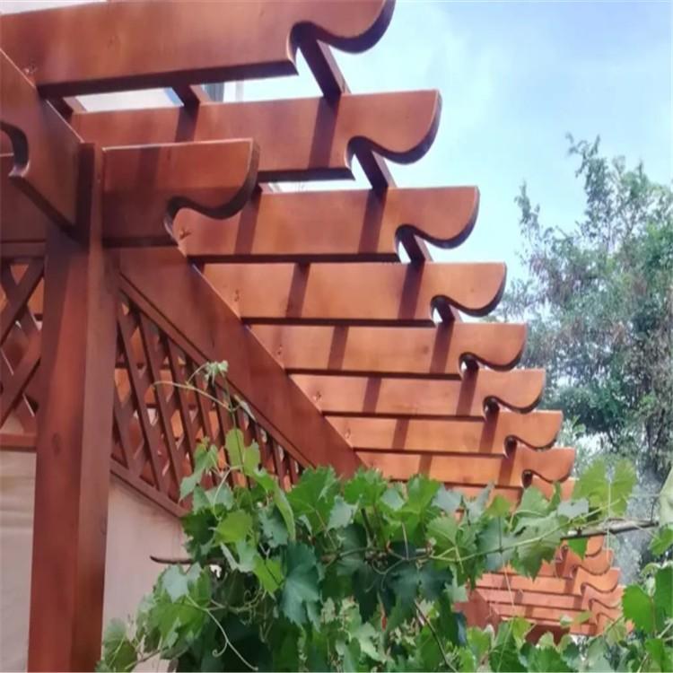 图为新创意木屋制造安装的花架,整体风格简约大气,色彩也非常的稳重,和植物构造成一幅美丽的画卷。设计师具有多年的木结构建筑设计经验,会根据客户的具体要求。提供出个性化的设计方案,用国际一流的技术和设计为客户量身订制最满意的产品。