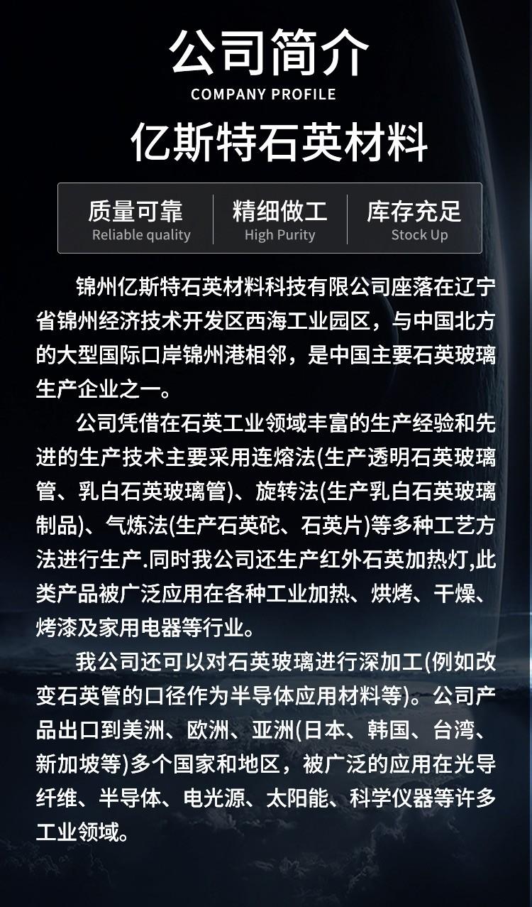主营:石英玻璃制品、电加热器及配件、石墨制品、电热材料、红外线和紫外线石英灯及其零部件、二氧化硅材料的技术