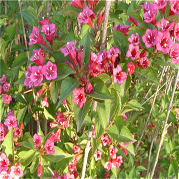 红王子锦带(拉丁名:Weigela florida cv.Red Prince),为忍冬科,锦带花属落叶开张性灌木,叶椭圆形,嫩枝淡红色(杭州地区为绿色),老枝灰褐色。夏初开花,花朵密集,花冠胭脂红色,艳丽悦目,开花盛期从5月到7月(长江以南为4月上旬-7月上旬),花序到10月份仍陆续不断。修剪一次,发一次芽,花更旺,抗寒、抗旱适应性强,被评为迎绿色奥运的优良品种。