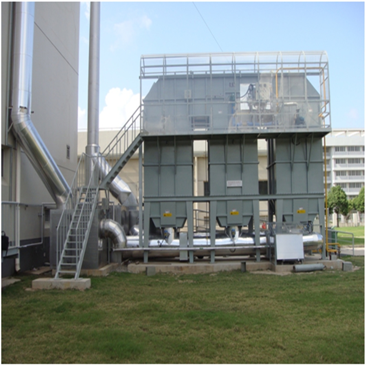蓄热式燃烧炉采用热氧化法处理中低浓度的有机废气,用陶瓷蓄热床换热器回收热量。其由陶瓷蓄热床、自动控制阀、燃烧室和控制系统等组成。其主要特征是:蓄热床底部的自动控制阀分别与进气总管和排气总管相连,蓄热床通过换向阀交替换向,将由燃烧室出来的高温气体热量蓄留,并预热进入蓄热床的有机废气;采用陶瓷蓄热材料吸收、释放热量;预热到一定温度(≥760℃)的有机废气在燃烧室发生氧化反应,生成二氧化碳和水,得到净化。典型的三床式RTO主体设备由一个燃烧室、三个陶瓷填料床、一个过滤室、管道和九个风向切换阀、一个补新风阀、一个直排阀、一个废气主控阀、一个泄温(炉膛泄压)阀组成。该装置中的蓄热式陶瓷填充床换热器可使热能得到最大限度的回收,热回收率大于95%;处理VOC时不用或使用很少的燃料。