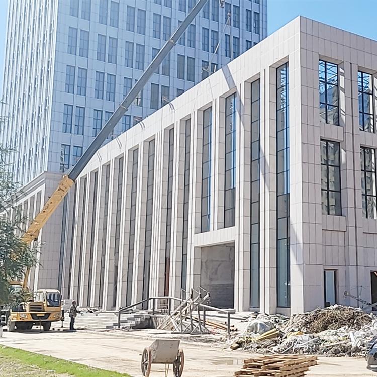 石材幕墙通常由石材面板和支承结构(横梁立柱、钢结构、连接件等等)组成,不承担主体结构荷载与作用的建筑围护结构。