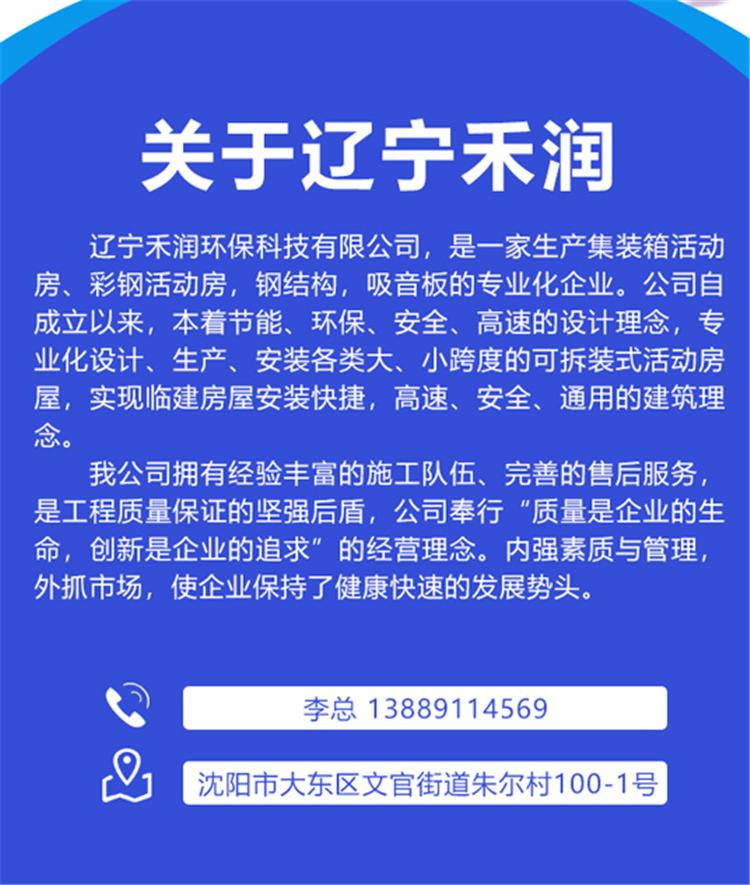 主营:集装箱活动房、彩钢活动房,钢结构、吸音板