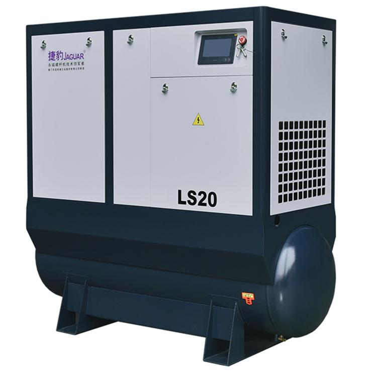 捷豹LS集成一体式螺杆机系列采用控制系统集成一体,采用显控一体机,一键控制螺杆机和冷干机的启停,操作更便捷。全系列搭配IE4永磁变频超高效率电机,永磁变频电机与电励磁同步电机相比,具有超高能效、结构紧凑、体积小、重量轻等特点。捷豹独创的永磁液冷一体式驱动技术,比常规电机驱动模式,效率提升8%,防护等级高达IP65。