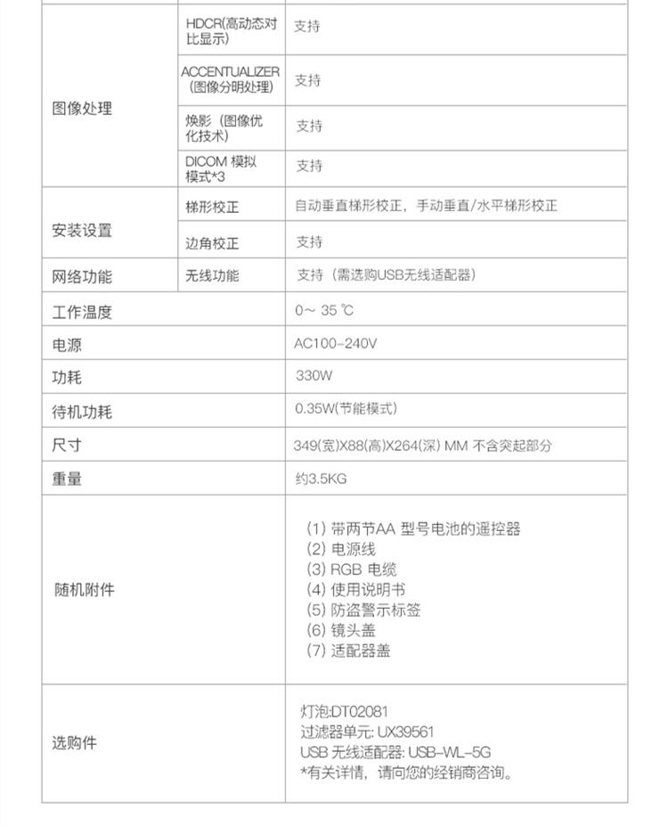 | 光源类型 | 230W UHP灯泡 | 光源寿命(标准模式) | 6000小时 |