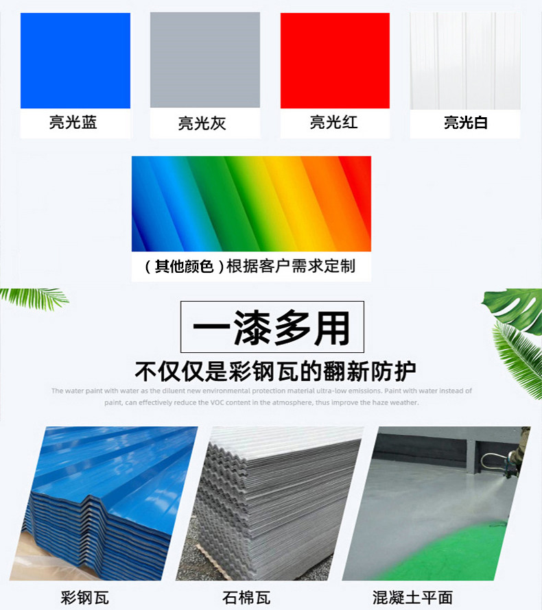 | 产品特性 | 美观 耐磨 | 产品 | 彩钢瓦专用漆 |