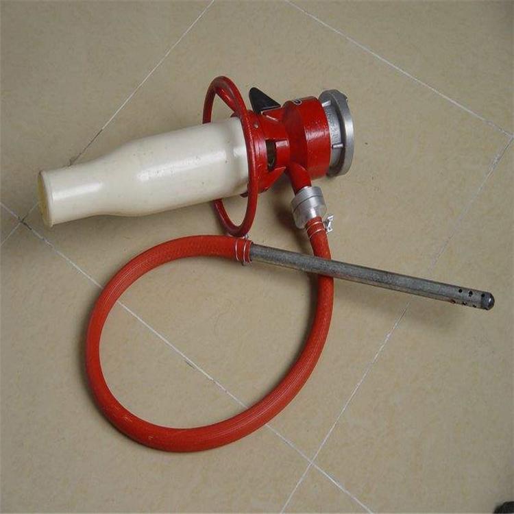 PQ系列低倍数泡沫枪:空气泡沫枪由枪筒、手轮、枪体、球阀、吸液管和KY65管牙接口构成。空气泡沫枪利用孔板使水流速产生的真空压差吸入泡沫液,并使之与空气混合后产生空气泡沫灭火。因其轻便灵活,使用方便,空气泡沫枪广泛适用于扑救甲、乙、丙类液体火灾或喷射水用于扑救一般固体火灾。