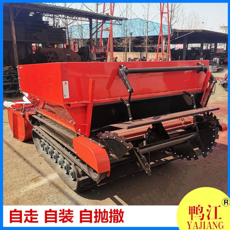 鸭江牌最新专利产品——多功能农家肥抛撒机械,集自动装料、行走、抛撒为一体。本产品自带铲斗上料功能,可将肥料直接装入料仓,输送链自动将肥料向后输送,再通过高速旋转的破碎轮对肥料进行打碎后,均匀抛撒还田(在使用过程中,可根据用户需求调节撒肥量)。本机型实现了干湿肥料均可抛撒的功能,适用于大棚、田地、菜园等作业场景,解决了施肥作业中人工装车及机械装车成本高的问题,为用户降低成本,提高收益,是农机专业户的理想机具。