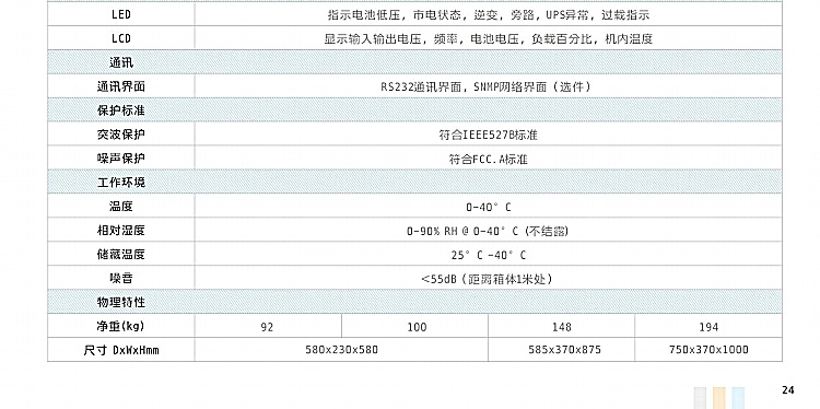 内置的LCD和LED的显示面板,提供一目了然的实时状态显示.UPSJS供RS232接口,支捕TCP/IP . SNMP^网络协议,提供先进的远程网络监控功能,采用发送电子邮件或传呼'短信等 方式提供实时报微信息等.