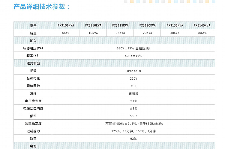 | 容量 | 6KVA 10KVA 15KVA 20KVA 30KVA 40KVA | 标准电压(VA) | 380V±25%(=相四线) |