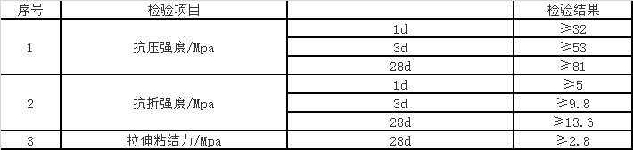 | 抗折强度1d | ≥5MPa | 抗折强度3d | ≥9.8MPa |