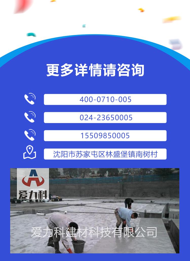 ★堵水后,为了保证表面平整,再用爱力科高强聚合物防水砂浆抹面,表面养护 3d 即可。