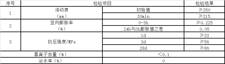 流动度(30min) ≥315mm 竖向膨胀率(0-3h) ≥0.225%