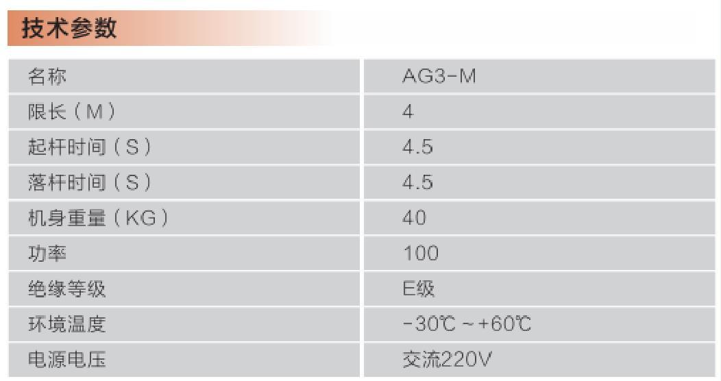 | 起落杆时间 | 4.5s | 闸杆限长 | 4m |