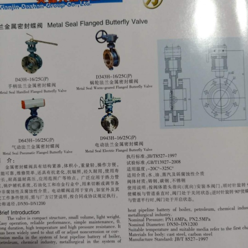 一、产品概述 工洲引进能够国外先进技术的基础上,采用精密的J形弹性密封圈和三偏心多层次金属硬密封结构,被广泛用于介质温度≤425℃的治金、电力、石油化工、以及给排水和市政建设等工业管道上,作调节流量和载断流体使用。该阀采用三偏心结构,阀座与碟板密封面均采用不同硬度和不锈钢制作,具有良好的耐腐蚀性,使用寿命长,本阀军邮双向密封功能,产品符合国家GB/T13927-92阀门压力试验标准。