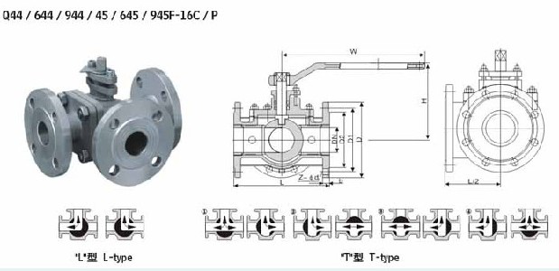 气动三通法兰球阀可分为L型和T型。L型三通球阀用于介质流向的切换,能使相互垂直的两个通道连通。三通球阀一般采用两阀座结构,亦可采用四阀座结构。四阀座密封三通球阀具有造型美观、结构紧凑合理,它不仅可实现介质流向的切换,也可使三个通道相互连通,同时也可关闭任一通道,使另外两个通道连通,灵活控制管路中介质的合流或分流