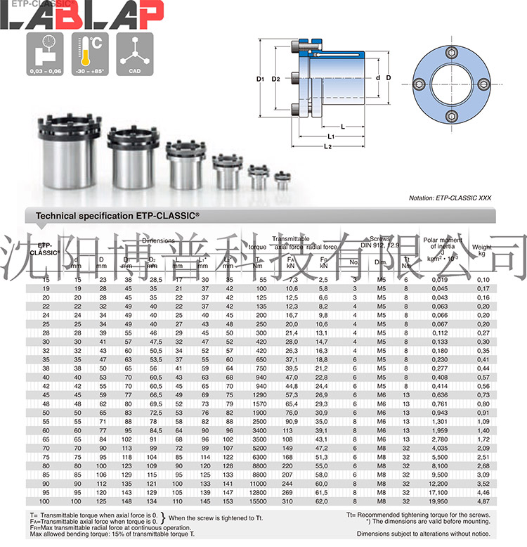 ETP瑞典原装产品,部分现货供应,广泛应用于快速装拆、无键连接的高精度场合。