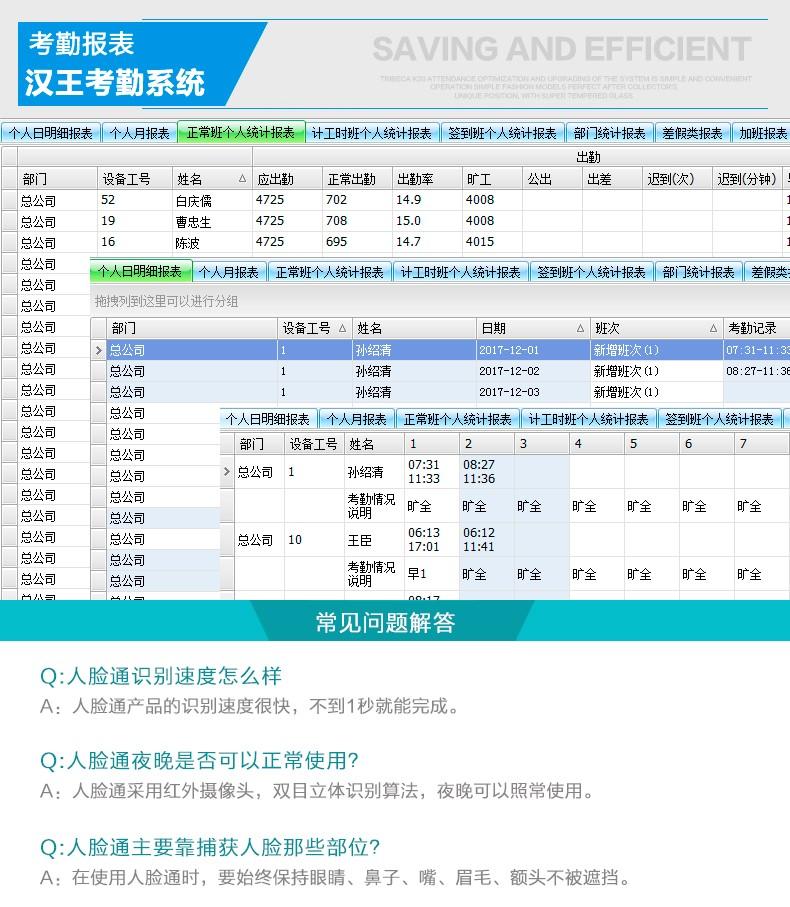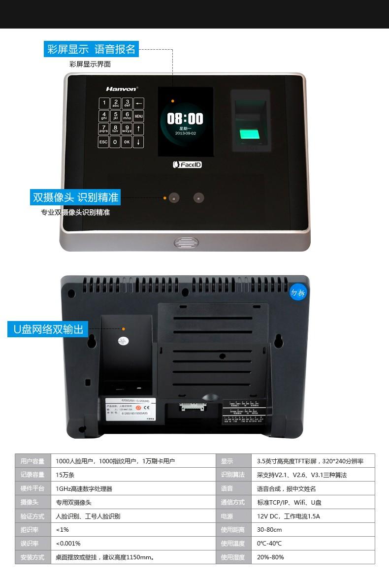 汉王产品辽宁总代理 B210考勤机人脸打卡机