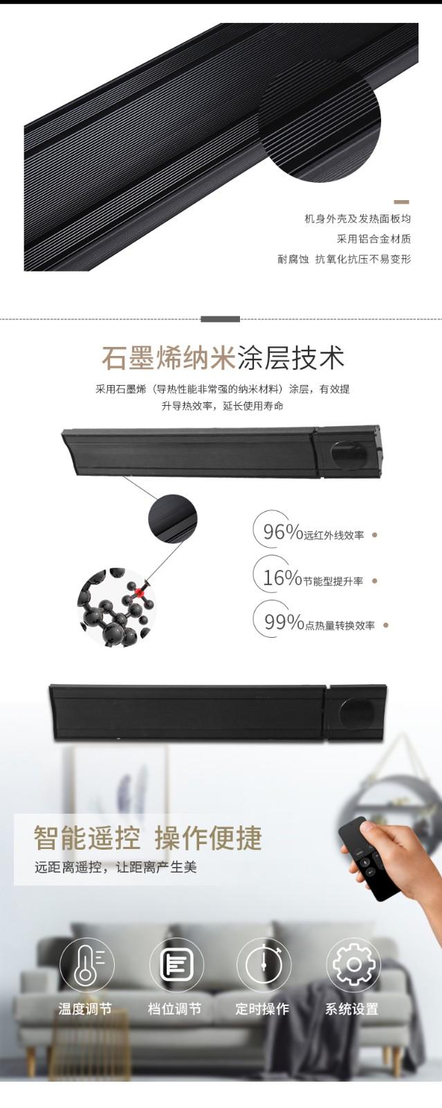 暖恒通高空辐射器是一种节能、安全的远红外电采暖产品。其采暖方式类似太阳辐射大地模式,给人冬天里晒太阳的暖和感。产品安装在室顶或墙壁上,运行安全稳定,不占室内面积,机器采用手机APP远程控制以及可遥控器控制方式,操作便捷、智能,是冬天里局部取暖的理想产品。