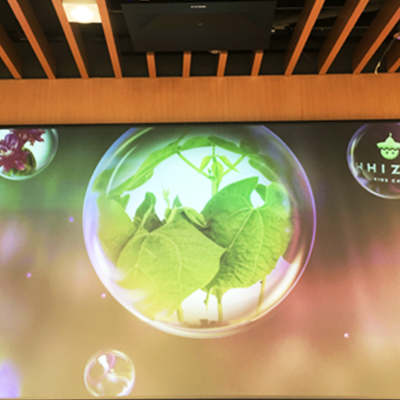 由于液晶膜夹层的特性,调光玻璃还可以作为影屏幕使用,替代普通幕布,在玻璃上呈现高清画面图像。