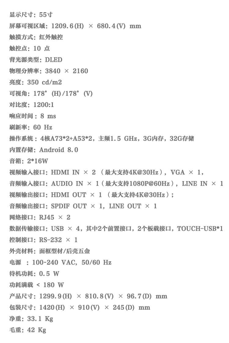 | 产品型号 | DS-D5B55RD/B(国内标配) | 显示尺寸 | 55 inch LED背光源 |