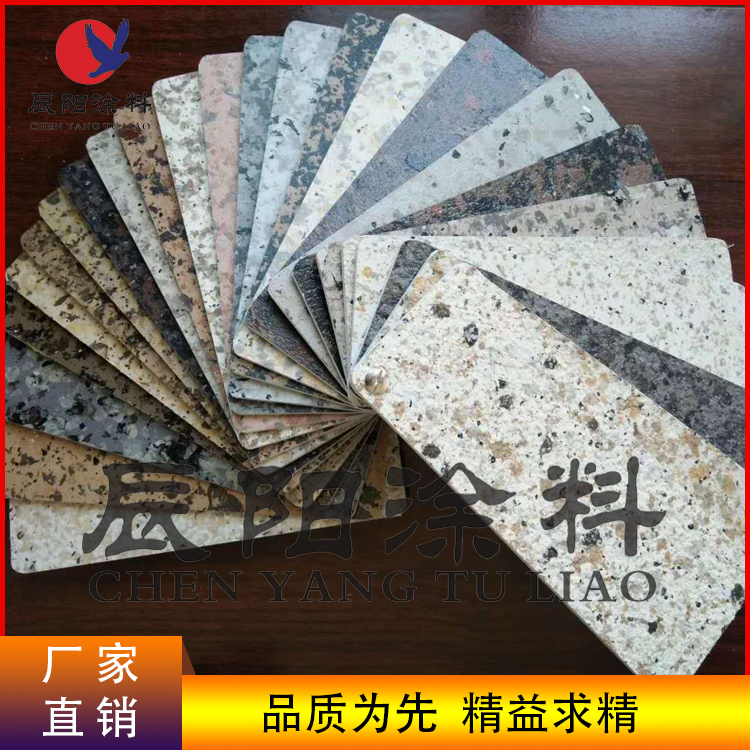 理石漆,是一种经过一次喷涂即可在连续色彩的背景涂膜上呈现出,明显分离的,多色彩粒点缀的全水性化涂料,该涂料具有VOC含量低,无毒、不燃,易施工的特点,涂膜可以做到和花岗岩异曲同工的效果。