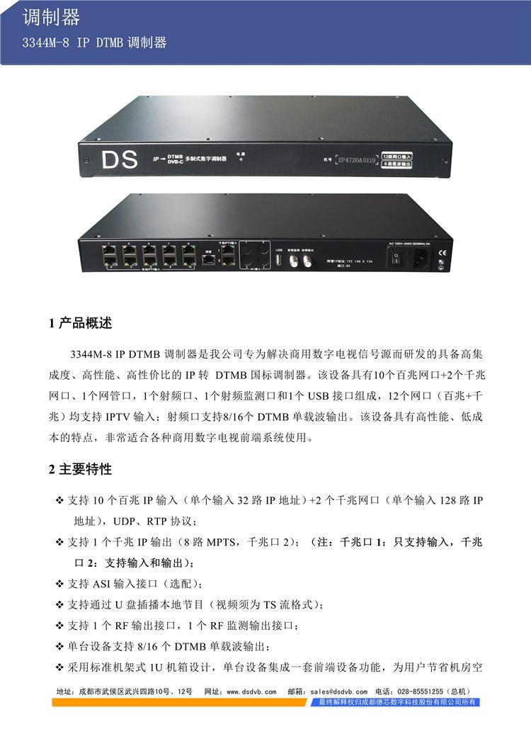 | 输入 | 4路百兆IP输入,UDP、RTP协议 | 调制标准 | GB20600-2006 |
