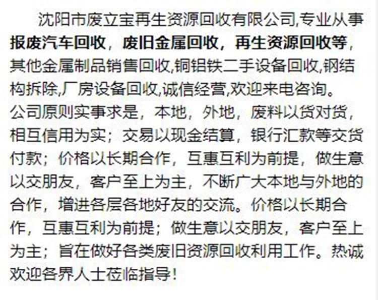 | 品牌 | 废立宝 | 品名 | 报废车辆回收 |